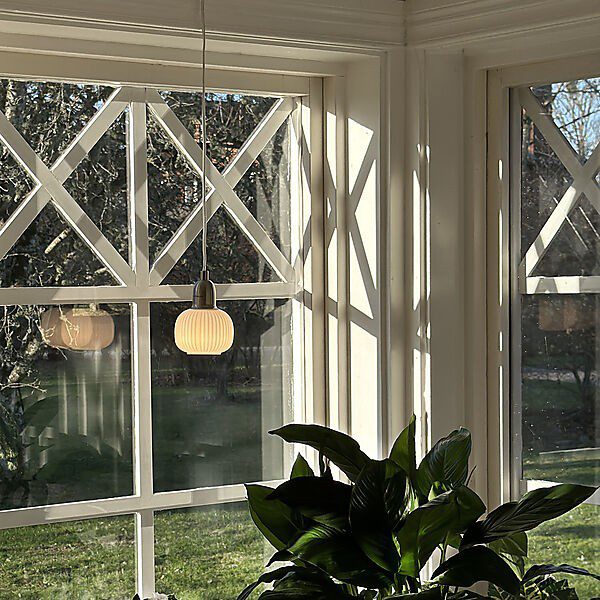 Elin vinduspendel har et stilrent design i metall med en dekorativt rillet glasskjerm som sprer et mildt og behagelig lys. Øk stemningen i rommet ved å henge en eller flere for å lyse opp plantene i vinduskarmen. Eller hvorfor ikke henge den ved sengen eller sofakroken? Kombiner gjerne med våre andre lamper i Elin-familien.