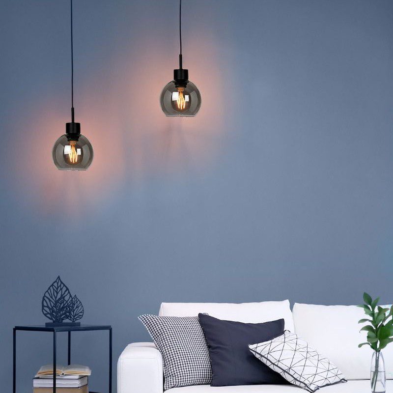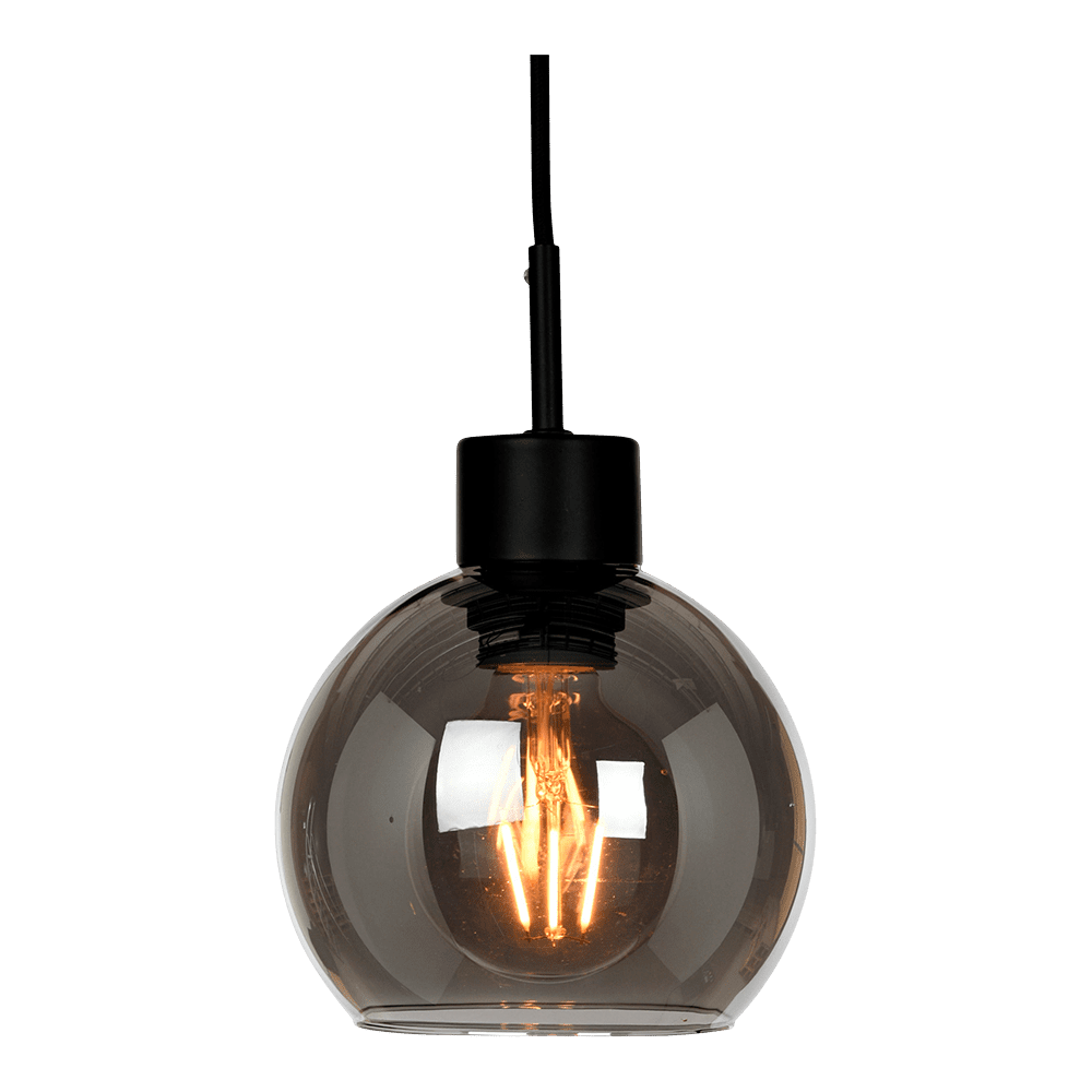 Roxy sort pendel med diameter 20 cm i flott design med røykfarget glasskjerm. Lampen har standard E27 sokkel for LED lyspære.